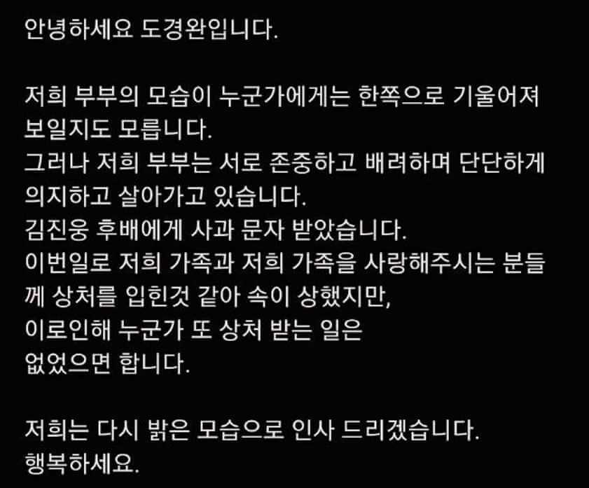 - 도경완 아나운서의 아내 장윤정 가수는 SNS를 통해 직접 입장을 밝혔습니다.