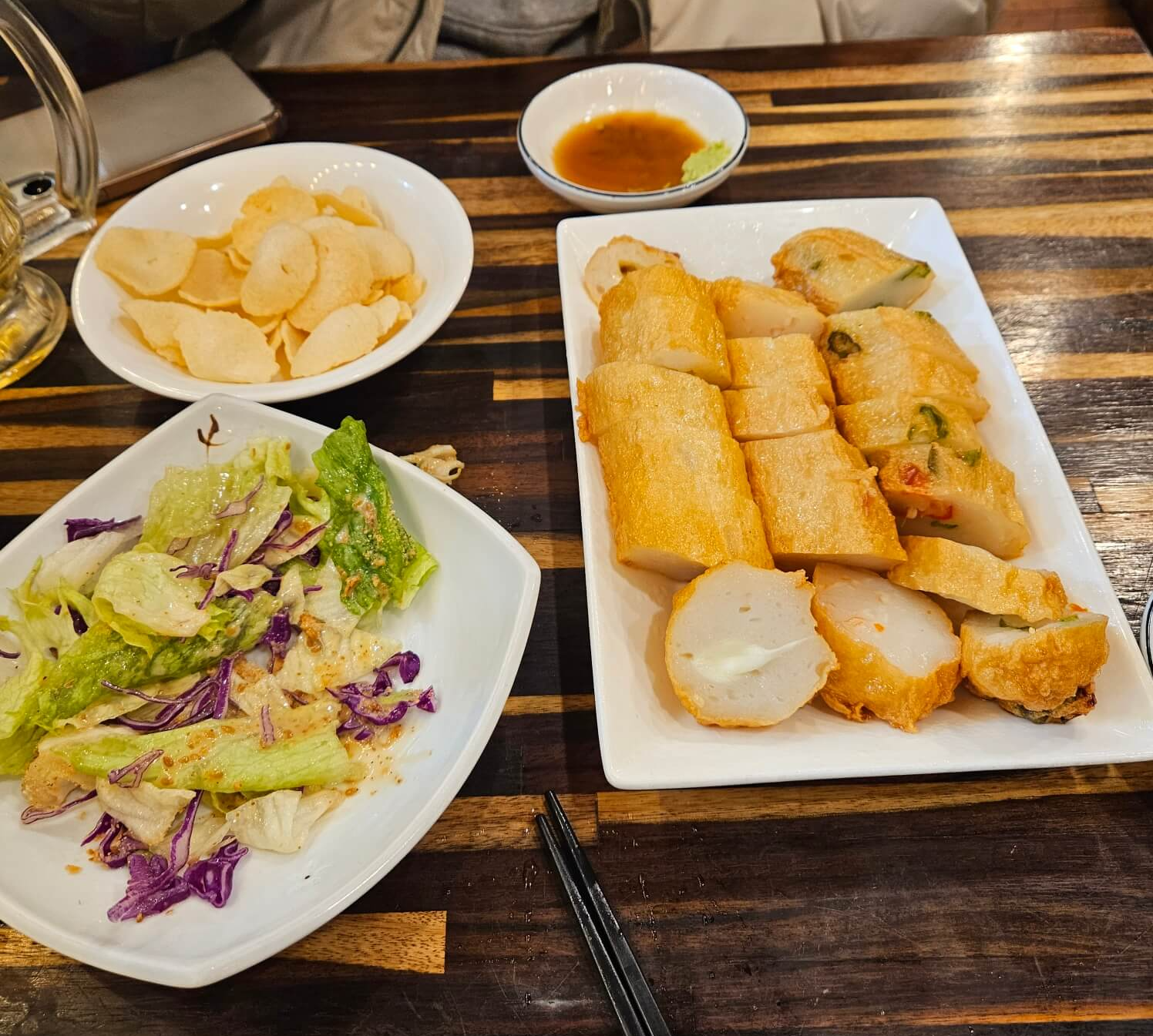 어묵은 종류가 정말 다양합니다. 밖에서 계속 어묵을 만들고 계시더라고요. 시장에서 절대 지나칠 수 없는 냄새 아시죠. 진짜 여기는 그냥 못 지나감. 그래서인지 테이크아웃하는 사람들도 많더라고요.(핫도그 마냥 꼬치에 꽃아서 주심) 저희는 2차로 간 거라 매장 안으로 들어가서 주문을 했답니다. 대기는 없었어요.