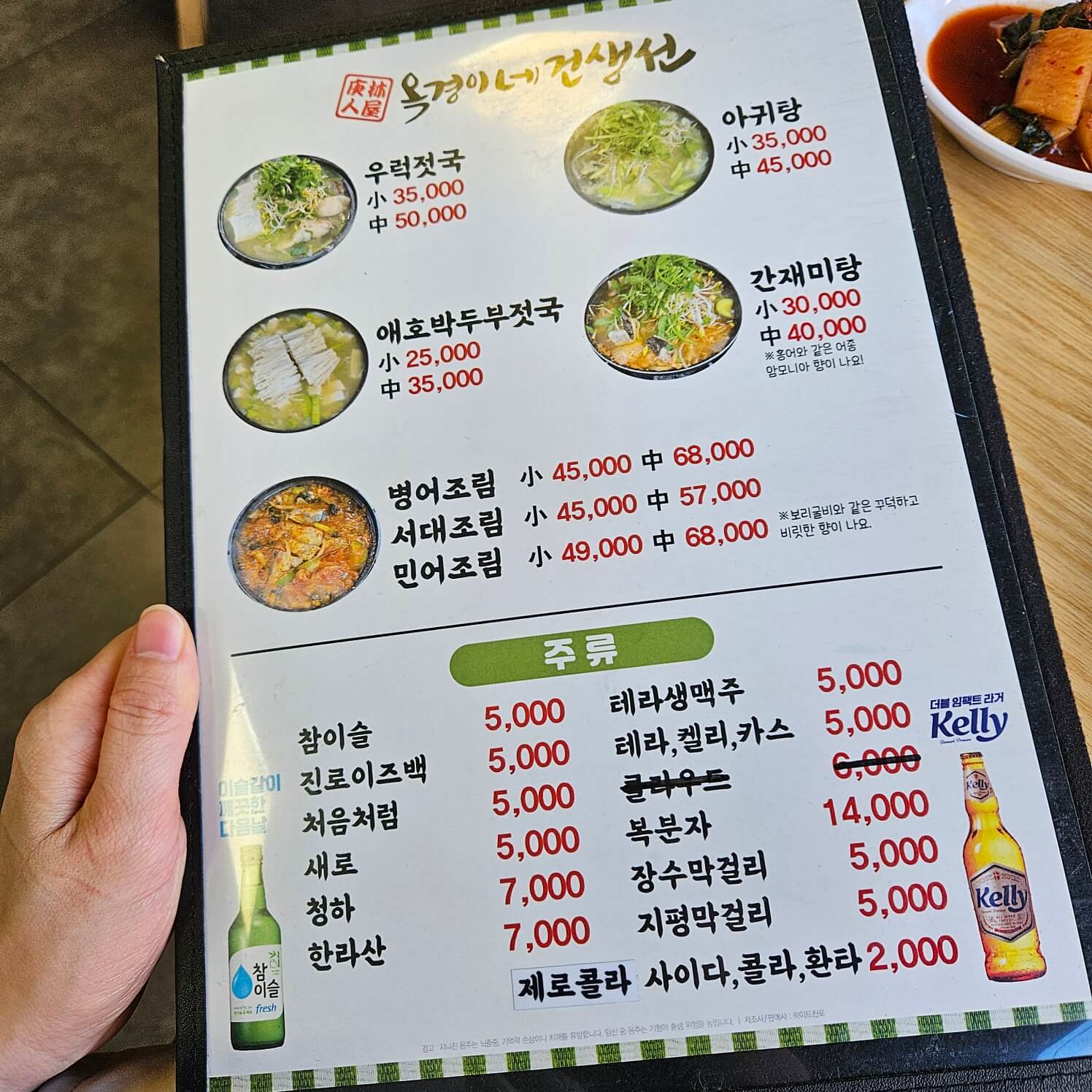 접시가 작아서 엥? 양이 작은데? 했는데... 웬걸... 남기고 나왔답니다. 양이 보기와는 다르게 많아요! 밑반찬으로는 미역국, 섞박지, 해초무침(?)을 줍니다. 다른 반찬은 안 먹어봐서 모르겠고 미역국은 진짜 맛있어요. 왠지 막걸리랑 잘 어울리는 맛?! 💡막걸리랑 오징어, 미역국 조합 추천합니다.